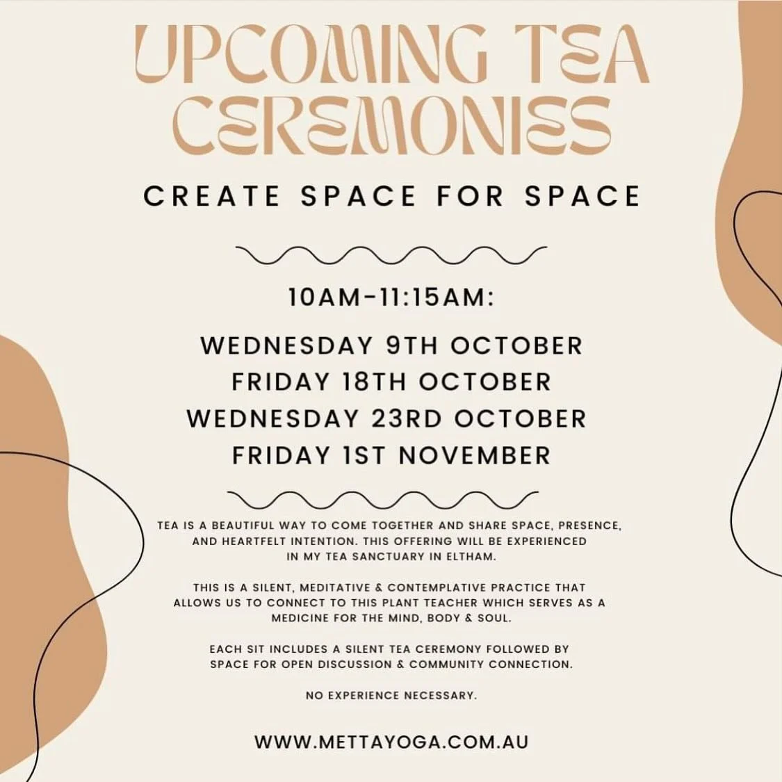At Metta Yoga we offer Tea Ceremonies, Vinyasa Yoga, Restorative Flow Yoga (suitable for Prenatal & Postnatal Yoga), Yoga Nidra, Meditation, Beginners Yoga, Mums & Bubs Yoga and more!